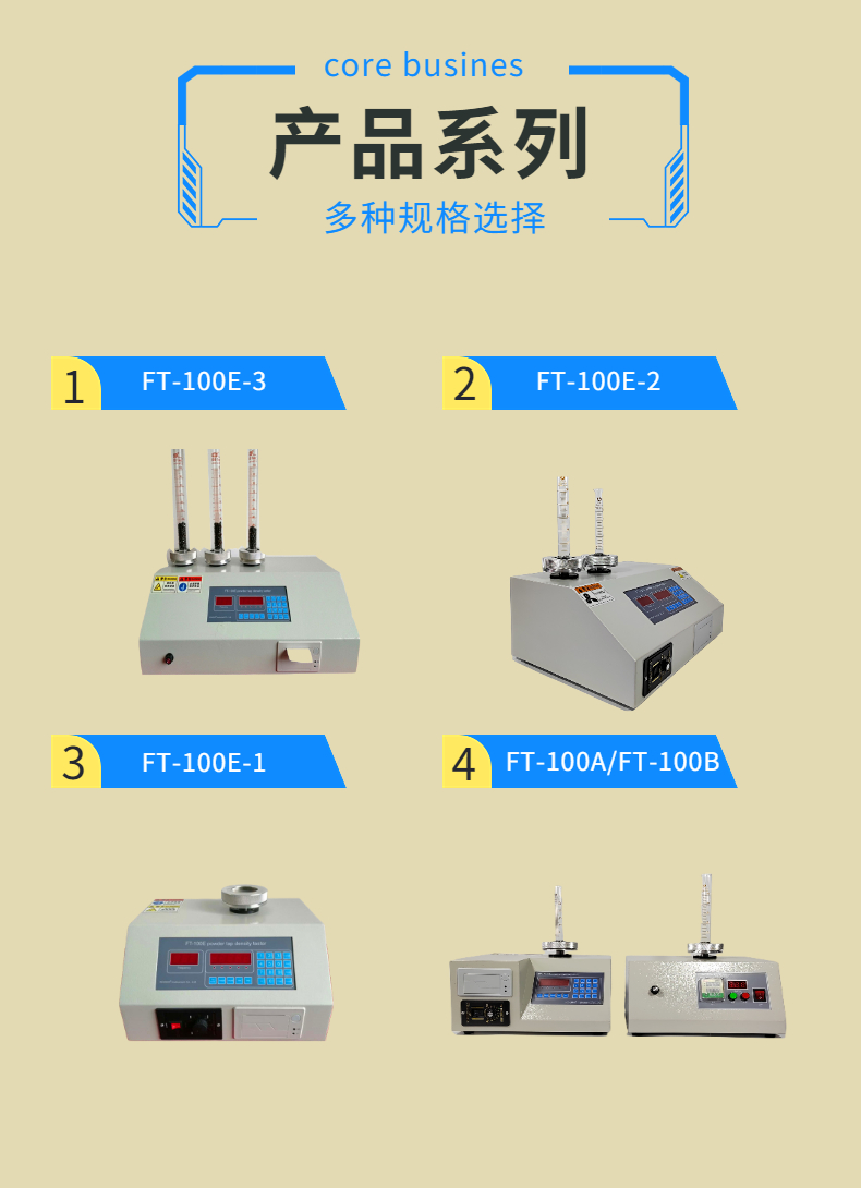 金屬、非金屬粉體、制藥、化工、電池、磨料以及科研教學等領域,振實密度測試對樣品顆粒的要求,不是所有的顆粒物都能用于振實密度測量,顆粒物應該與其應用需求匹配.