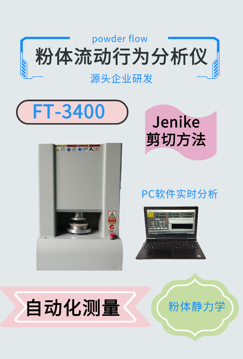 粉體是復雜組合體,具備多種材料性質特性,如固體材料,液體材料和氣體等特性,這些特性的任意組合從而形成應用于個行業的新材料,在粉體的物理特性中,粉體的流動性是非常重要的指標,對粉體的備制表征以及生產工藝,儲存,運輸 ,管道傳輸都會產生影響;所以在粉體的研究中是無法逾越的步驟.